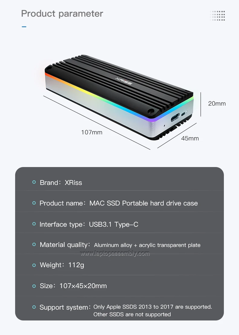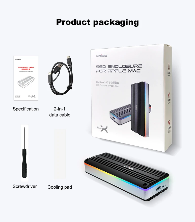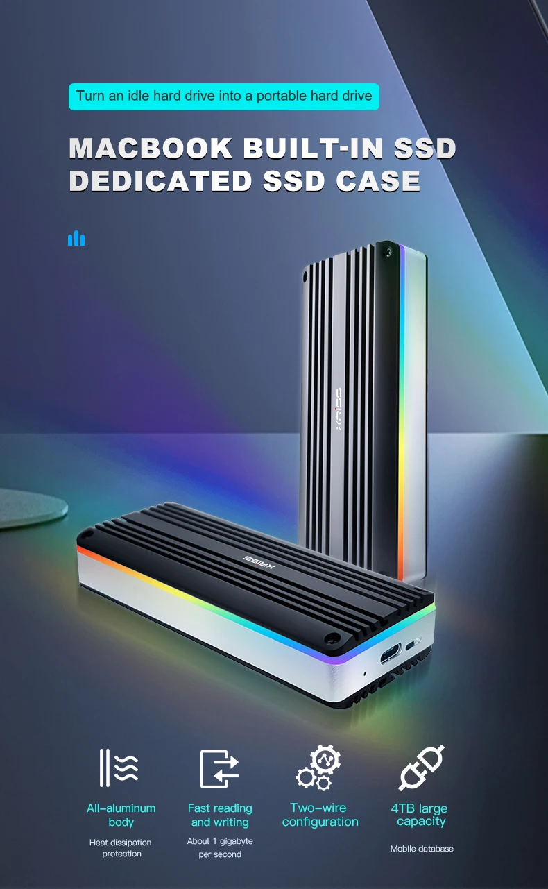External Aluminum Case USB 3.2 GEN2 20GBps SSD RGB Box case Only for MACBOOK SSD