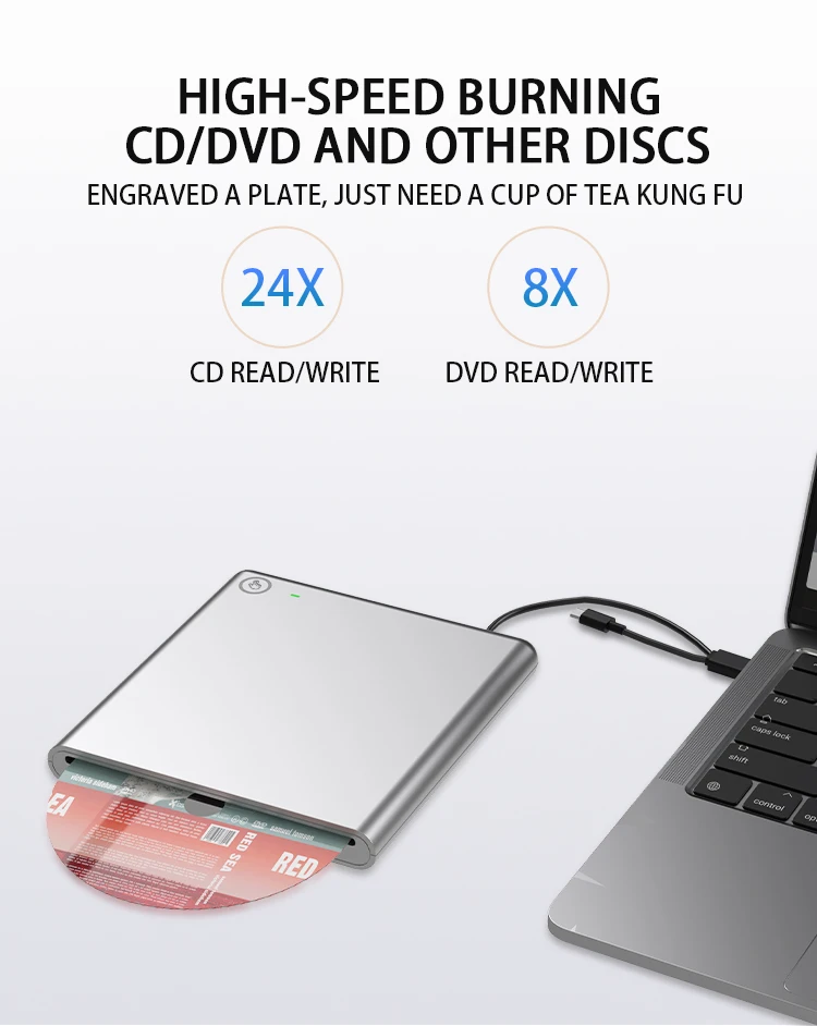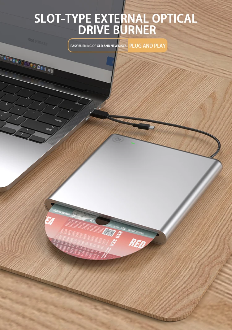 USB Mobile Computer External Optical Drive DVD Burner Laptop Application with Optical Disc Player and Reader Connection